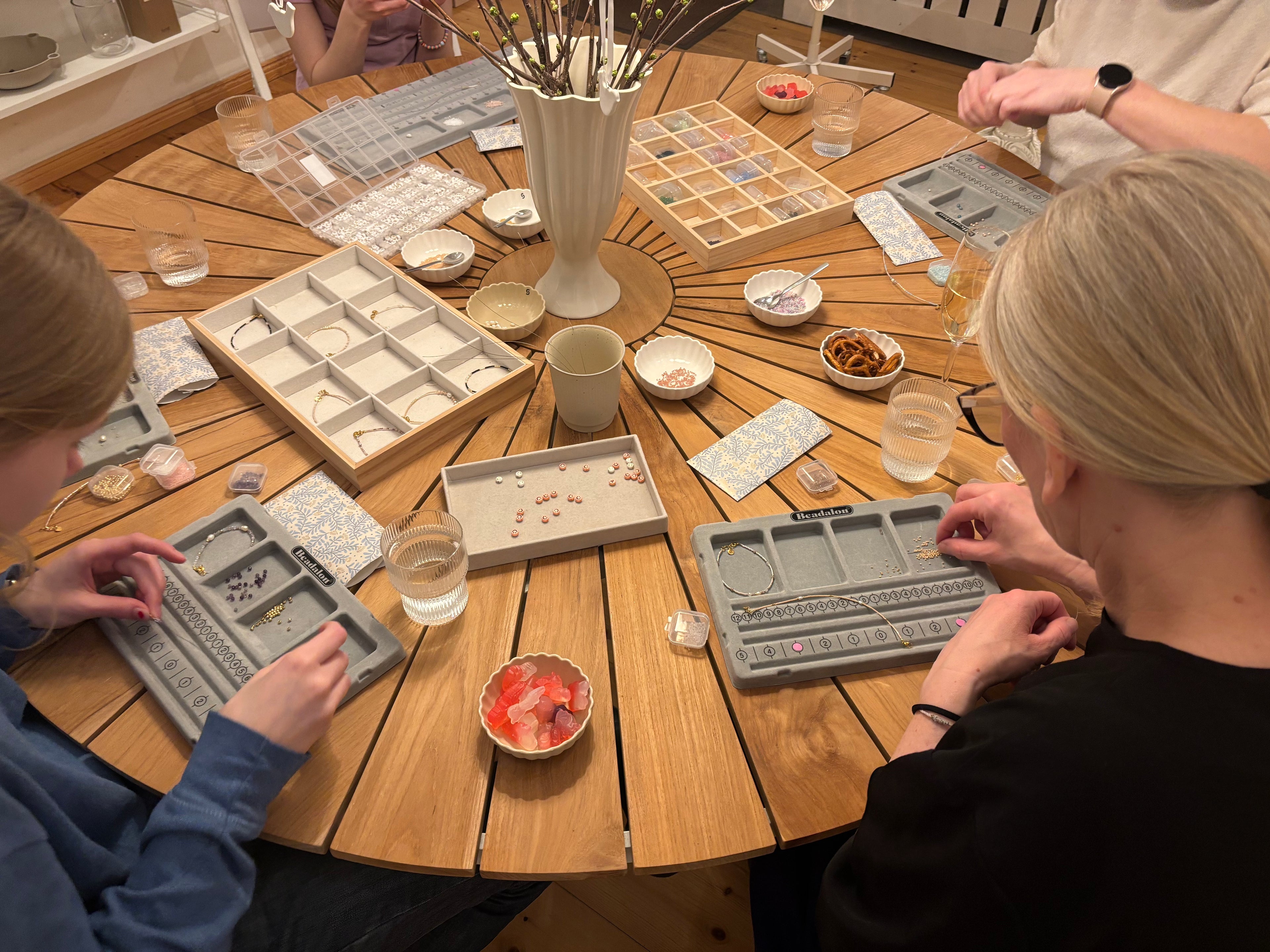 Ob Geburtstagsfeier, Junggesellinnenabschied oder Mädelsabend - kreiere zusammen mit deinen Freunden dein individuelles Schmuckstück aus exquisiten Materialien wie Süßwasserperlen und Edelsteinen. Bei einem Getränk, entspannter Musik und mit professioneller Anleitung kannst du dich in angenehmer Atmosphäre kreativ entfalten und damit eine unvergessliche Erinnerung schaffen.
